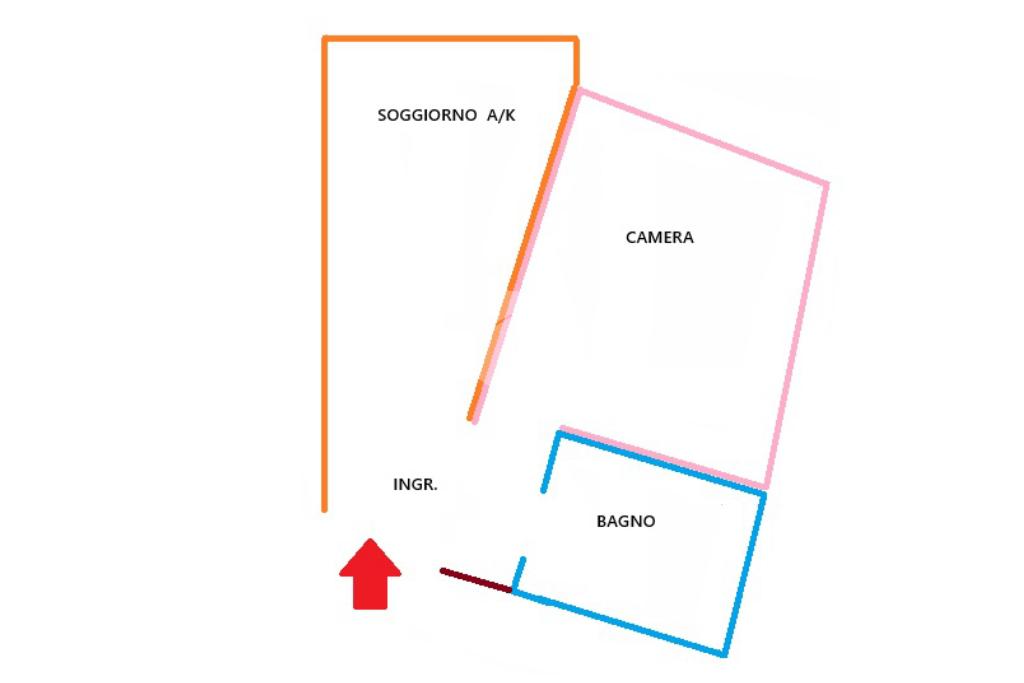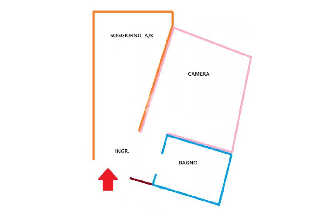 L' appartamento è composto da: ingresso,soggiorno con cucina a vista, ampia zona notte, e bagno con doccia e finestra.