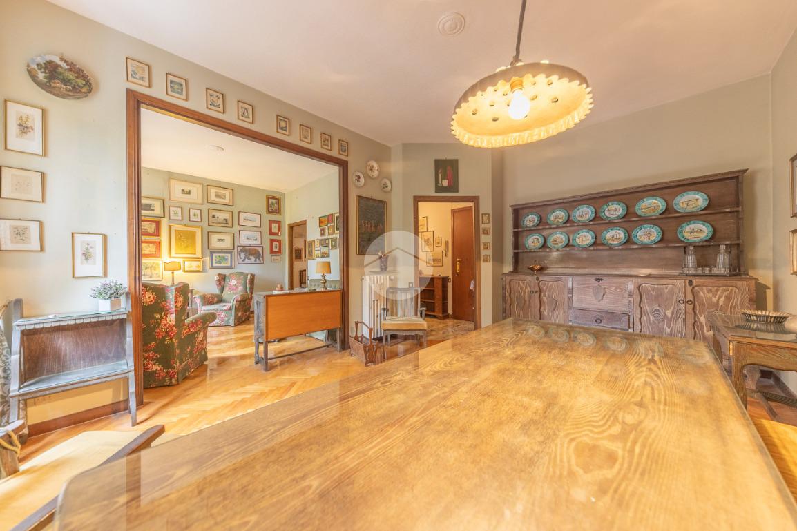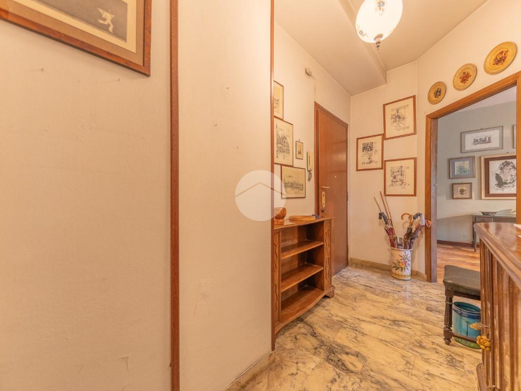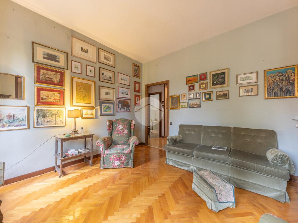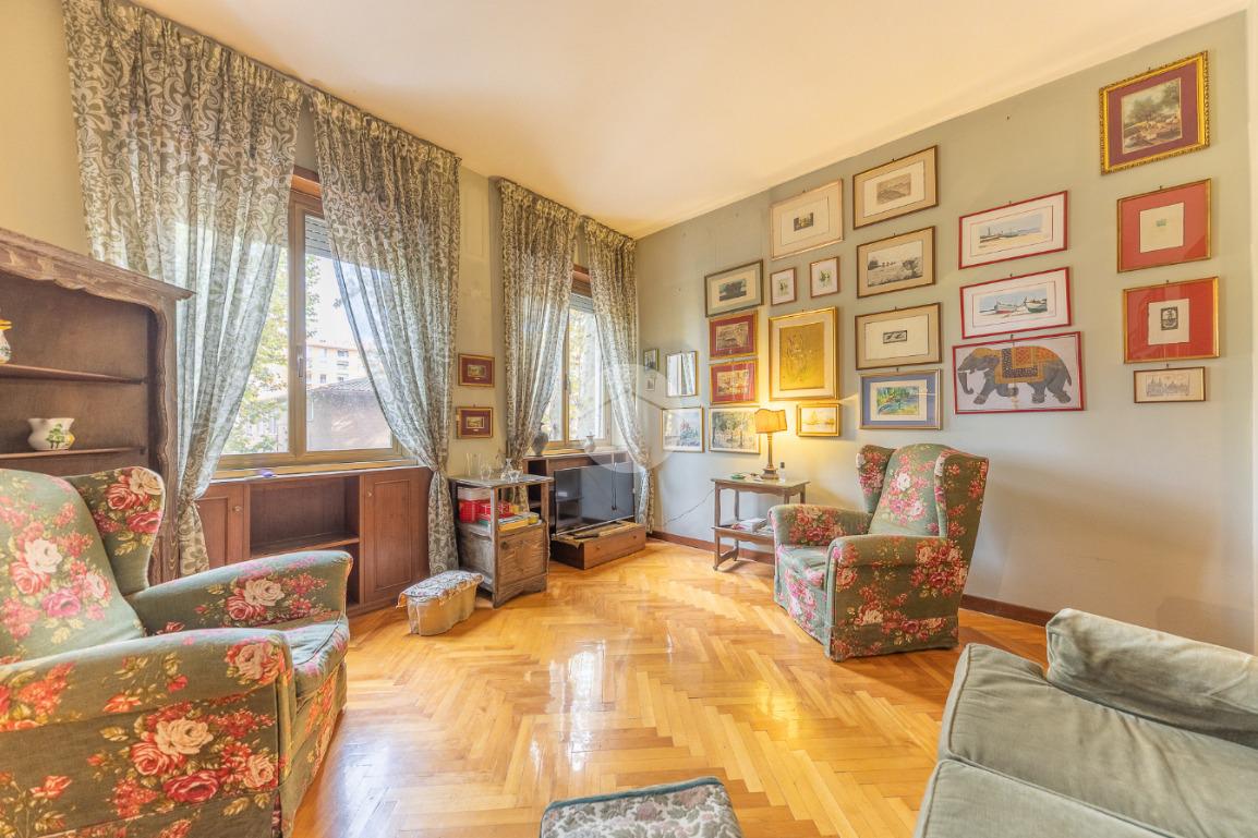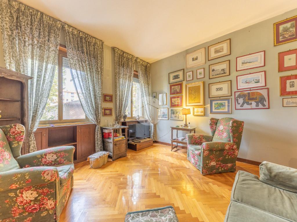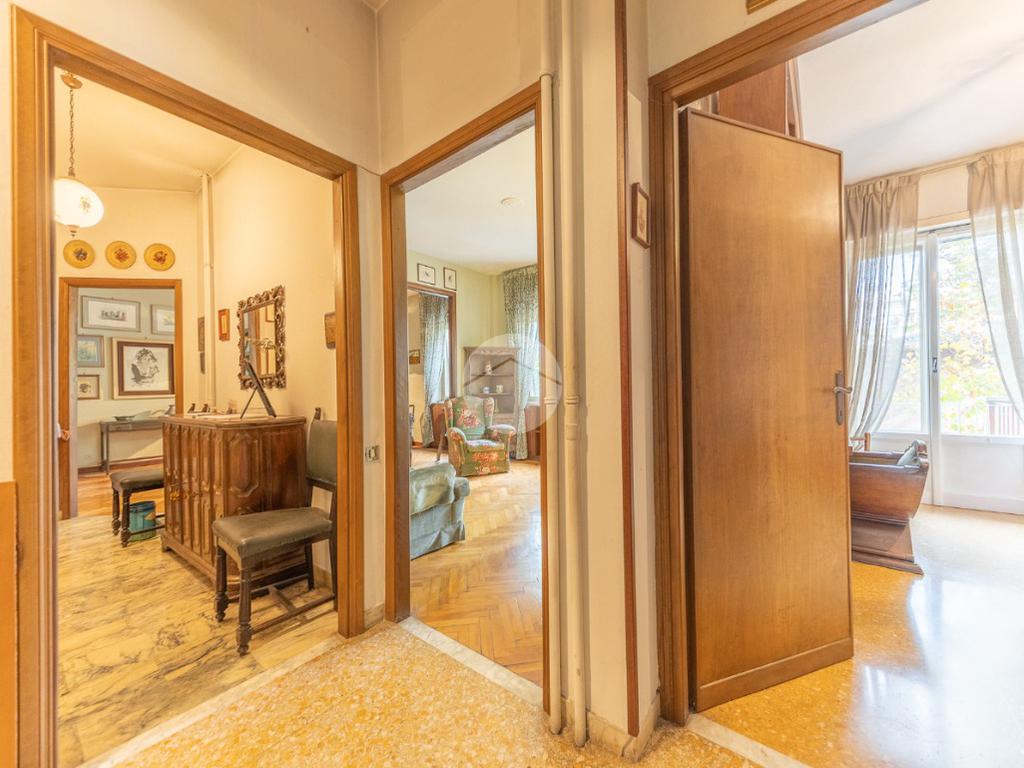 Appena si entra, si viene accolti da un grande disimpegno che introduce all'accesso diretto al salone triplo, ampio e luminoso, da cui si può godere di una bella vista sul parco, regalando un’atmosfera tranquilla e verde.