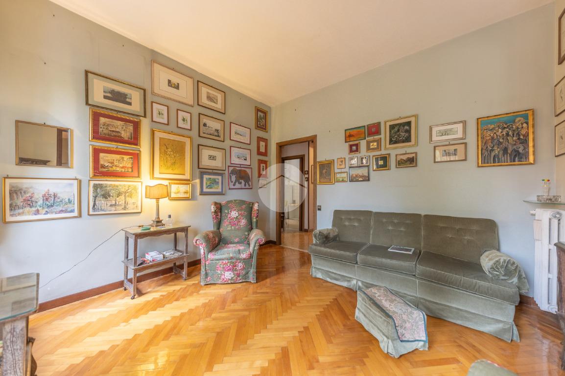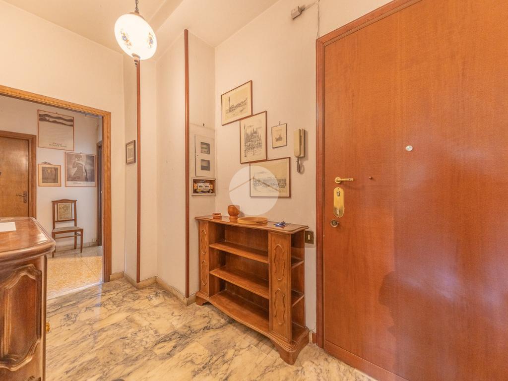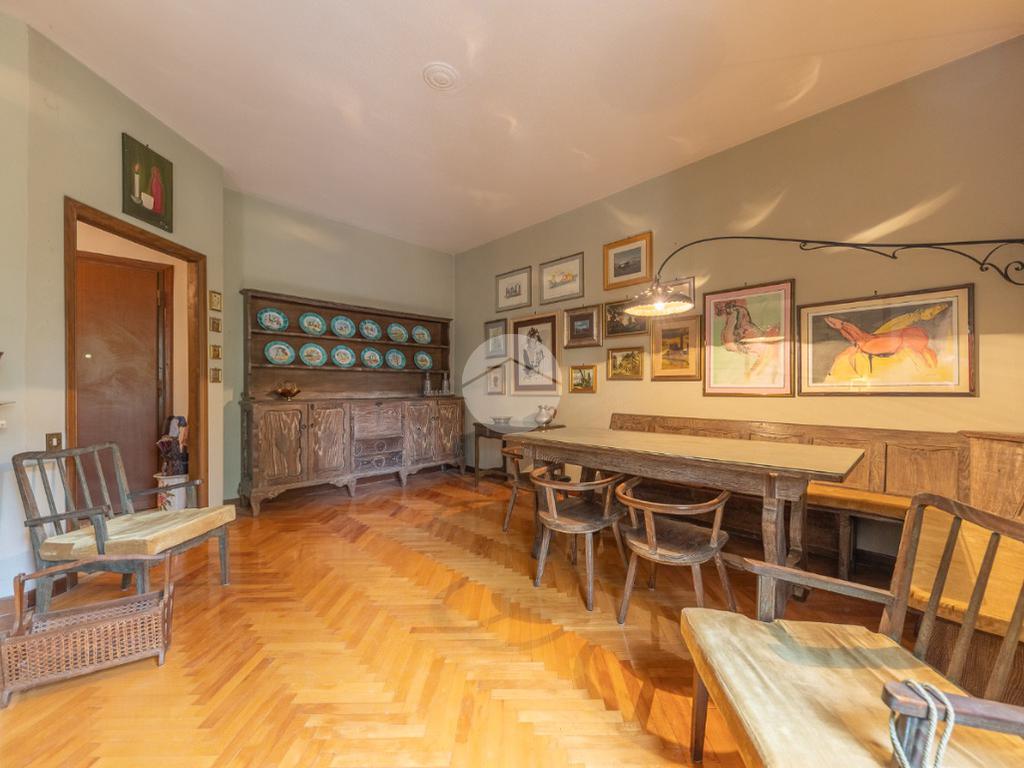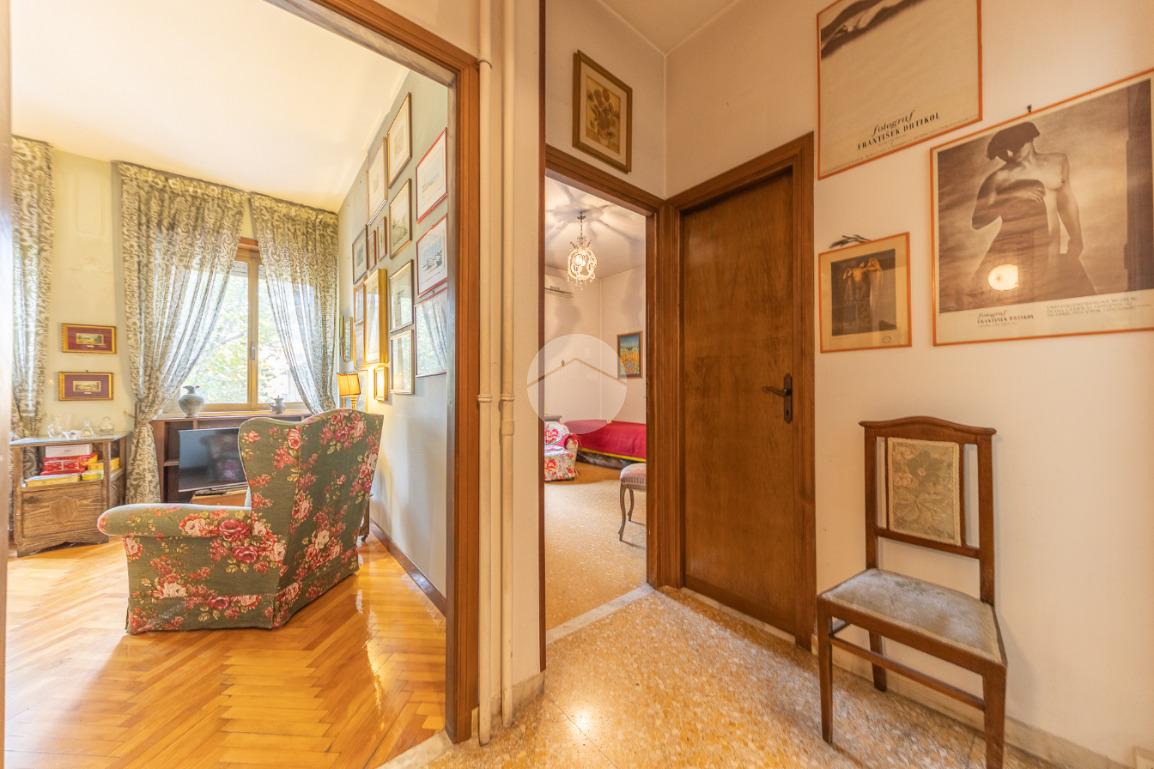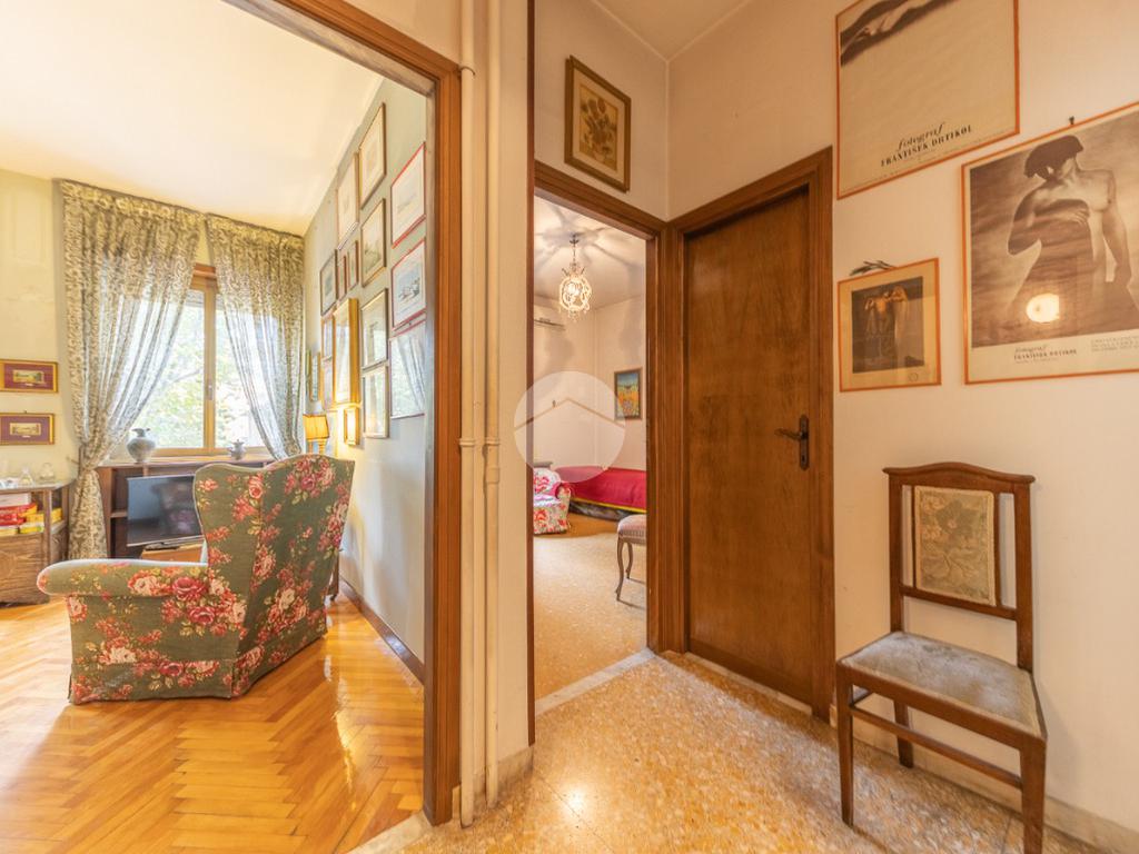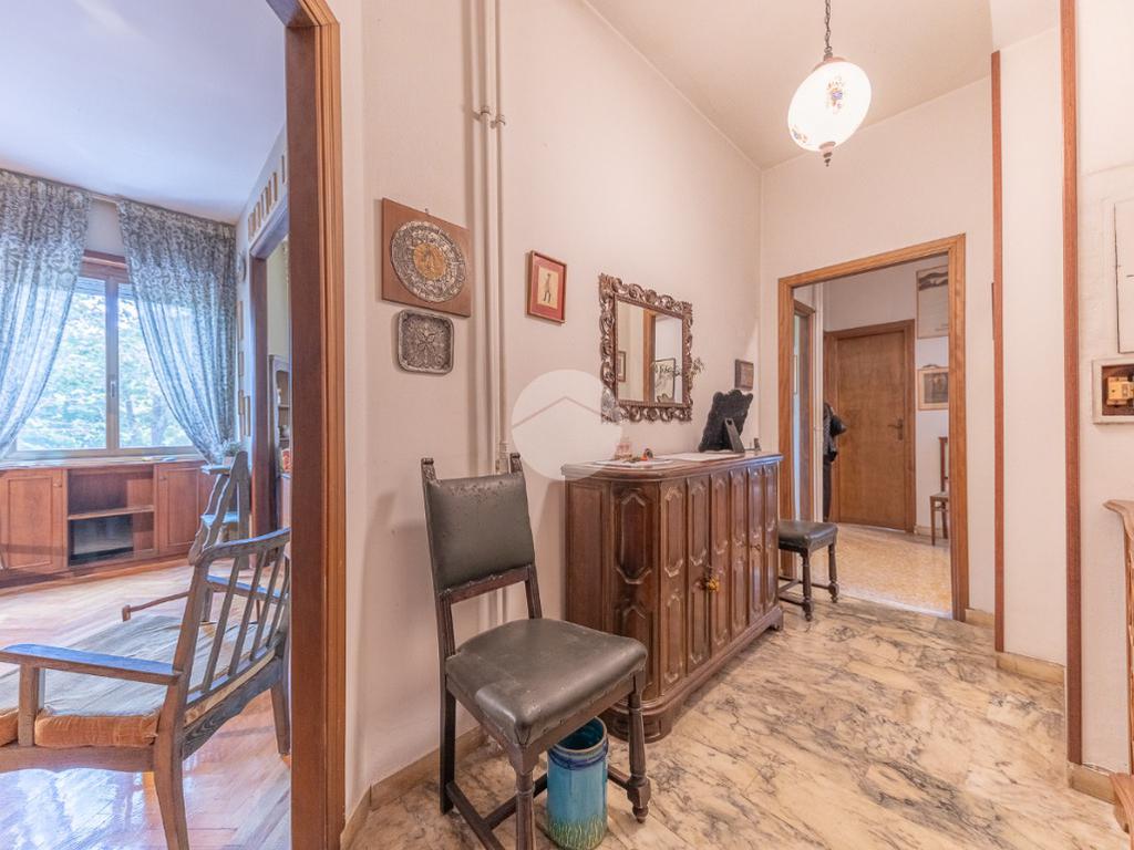 Appena si entra, si viene accolti da un grande disimpegno che introduce all'accesso diretto al salone triplo, ampio e luminoso, da cui si può godere di una bella vista sul parco, regalando un’atmosfera tranquilla e verde.