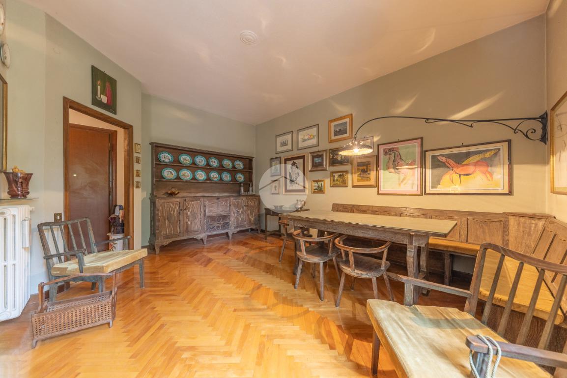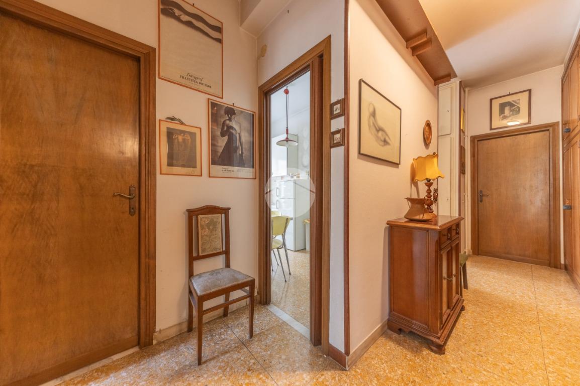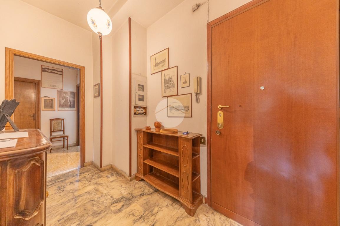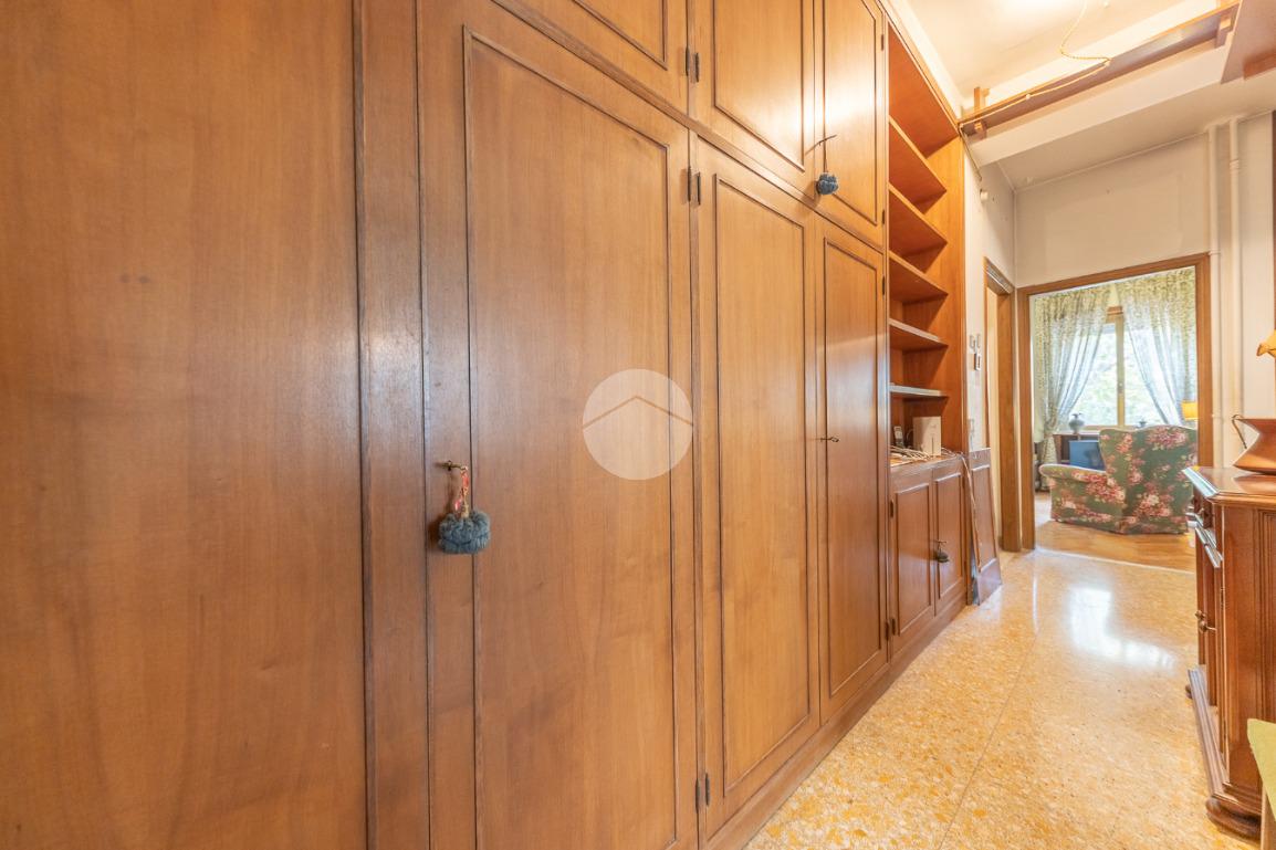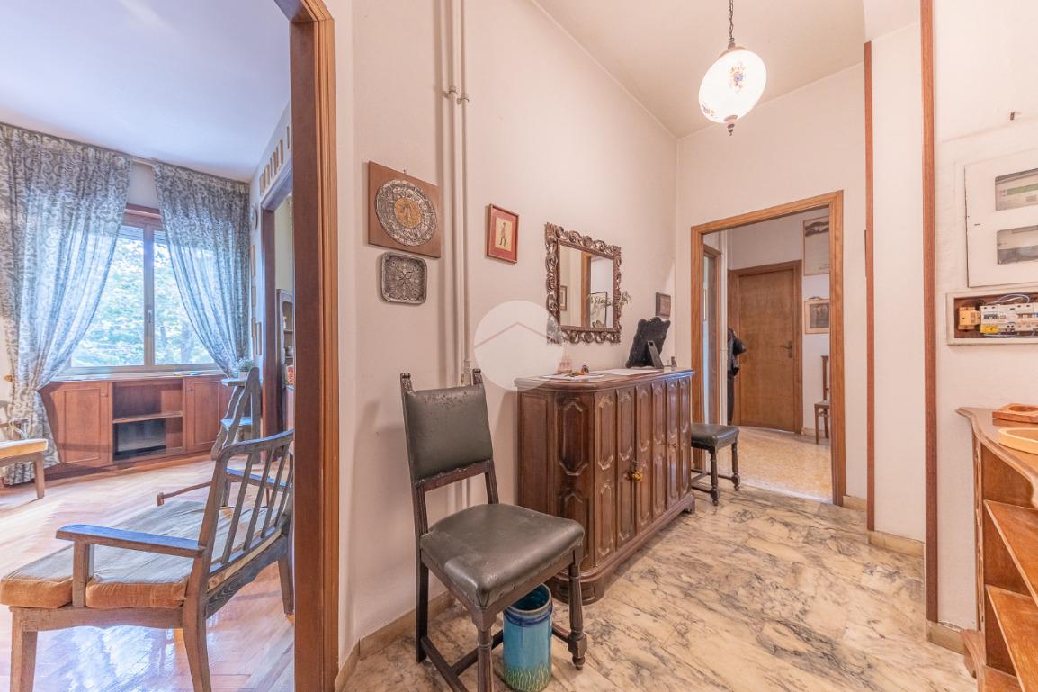 Appena si entra, si viene accolti da un grande disimpegno che introduce all'accesso diretto al salone triplo, ampio e luminoso, da cui si può godere di una bella vista sul parco, regalando un’atmosfera tranquilla e verde.